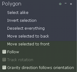 Move selected to back/front (Přesuň vybraný objekt zpět dopředu) - daný objekt posune o úroveň dopředu nebo dozadu. Tato funkce vychází z toho, že Algodoo funguje jako vektorový grafický editor.